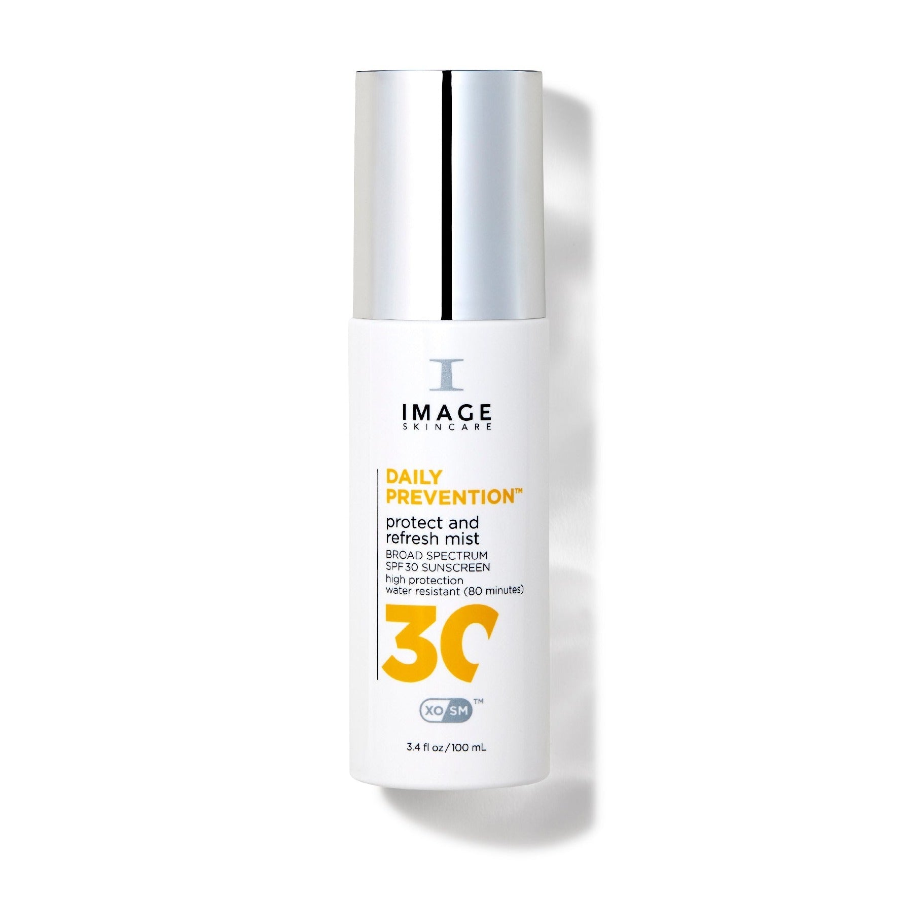 Dieses hydratisierende DAILY PREVENTION Protect and Refresh Mist SPF30 Trockenöl-Gesichtsspray bietet umfassenden Sonnenschutz und nährt die Haut mit Wiesenschaumkraut- und Buriti-Fruchtölen. Es hinterlässt einen schönen Glanz und ist kaum spürbar auf der Haut, ideal für das Nachtragen von Sonnenschutz über dem Make-up und für erfrischenden UV-Schutz den ganzen Tag über. Die IMAGE Skincare eigene, zum Patent angemeldete XOSM® Technologie verstärkt die Wirkung der Antioxidantien Ectoin, Vitamin C und astaxanthinreicher Mikroalgen, um umfassende Pflege zu bieten und einen zusätzlichen Schutz gegen vorzeitige Hautalterung zu gewährleisten.